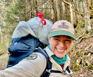 I’m a Ridgerunner, sure, but I am always a teacher of trail etiquette, an unofficial trash-hauling pack mule, and now a walking billboard for Leave No Trace. At some point, I started strapping the ever-growing trash bag high on top of my pack, like a crown of absurdity. It bounced comically as I hiked, drawing glances and, occasionally, gasps.